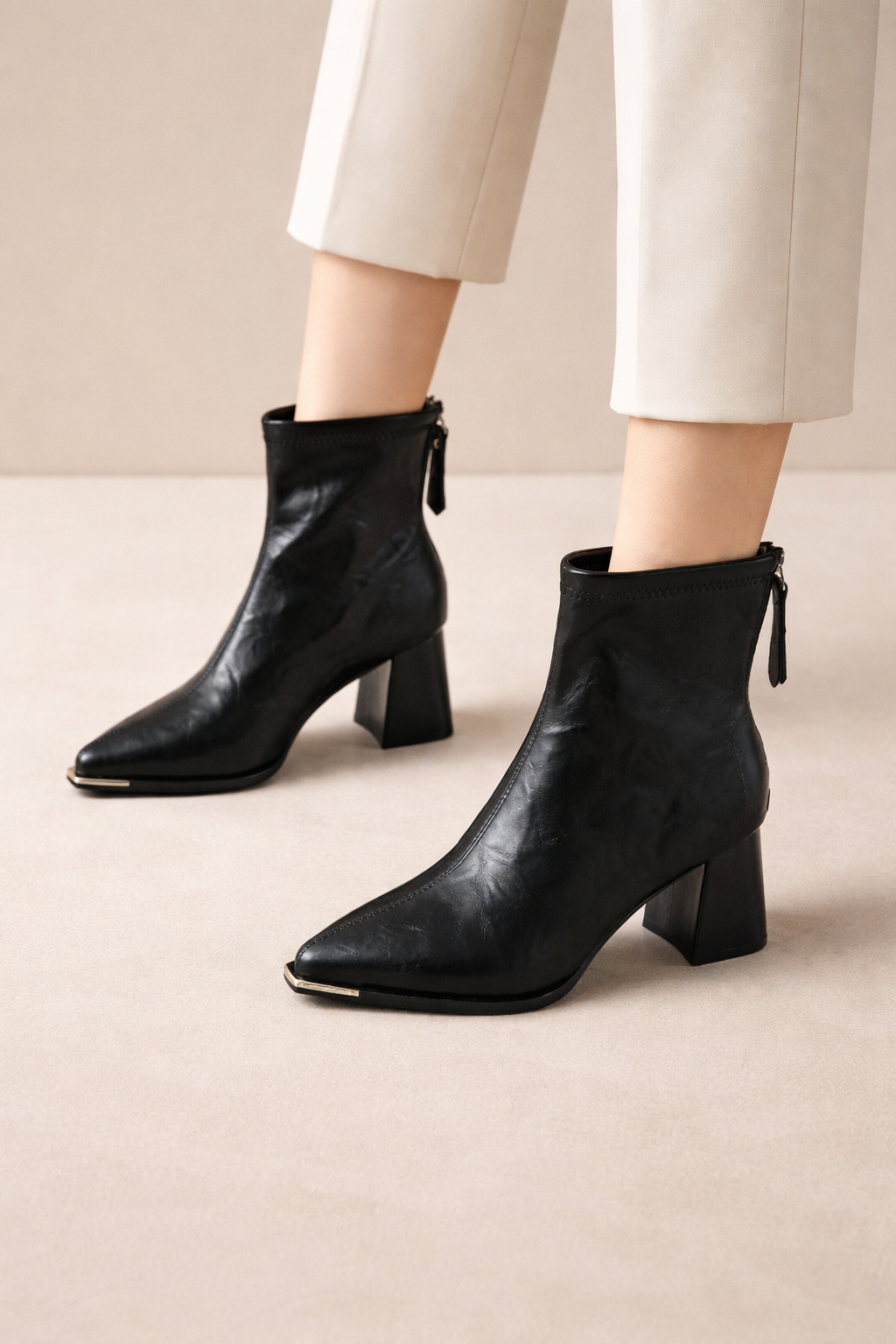 Estas botas de tobillo para mujer presentan una silueta estilizada y equilibrada, pensada para looks urbanos con una estética limpia y atemporal. El diseño de punta definida alarga visualmente el pie y mantiene una presencia sobria que facilita combinaciones diarias con prendas estructuradas o fluidas.