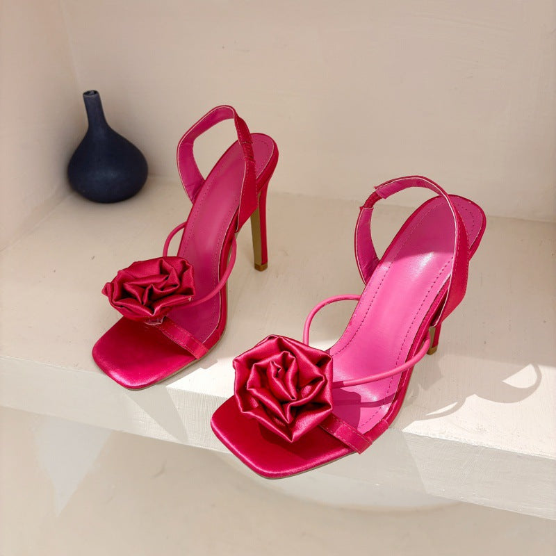 Sandalias de tacón con flor para fiesta para mujer - Kiara