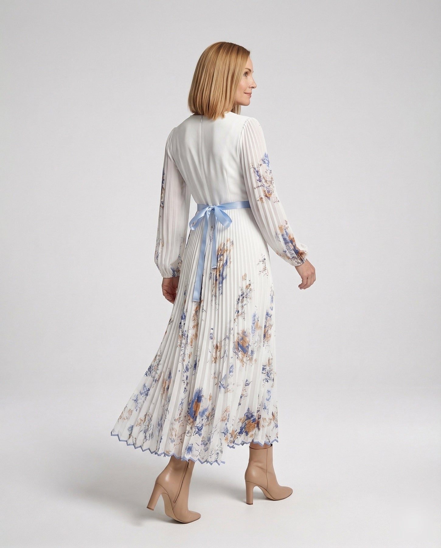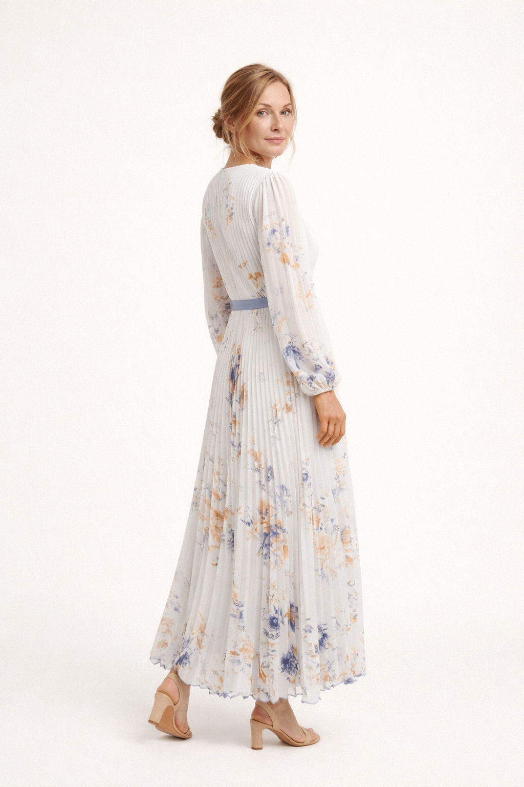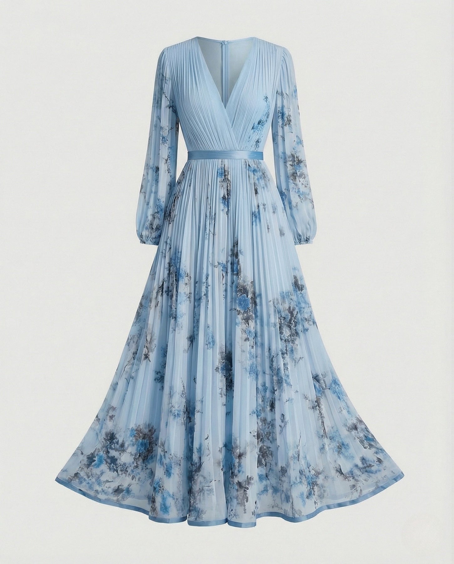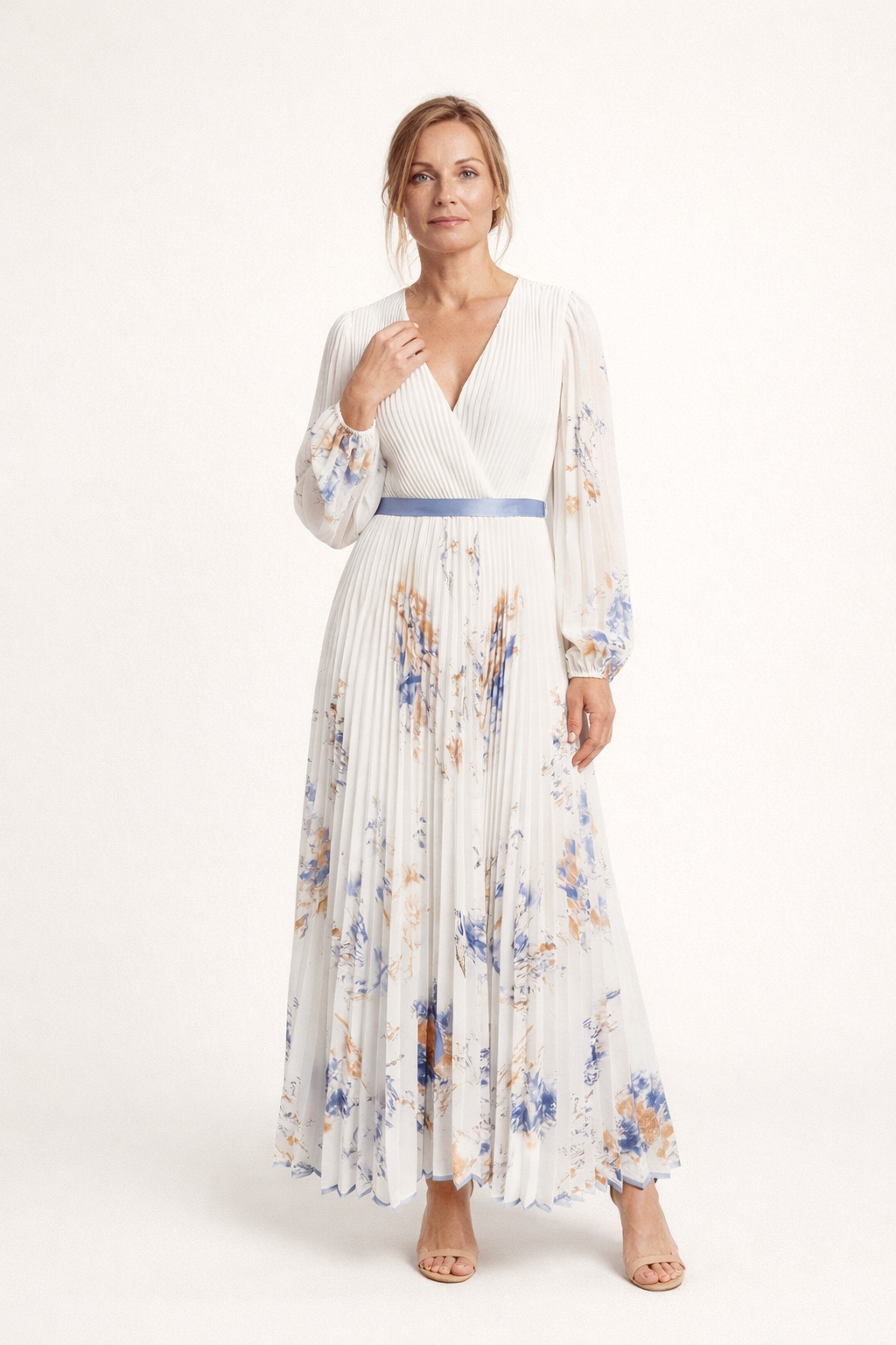 Vestido de mujer Alwine con largo maxi plisado escote cruzado y manga larga ligera. La cintura definida marca mejor la silueta mientras la falda cae con movimiento suave al caminar. Funciona para eventos cenas celebraciones o salidas donde quieres un look arreglado sin complicarte y mantener una imagen limpia bien llevada durante todo el día o la noche.