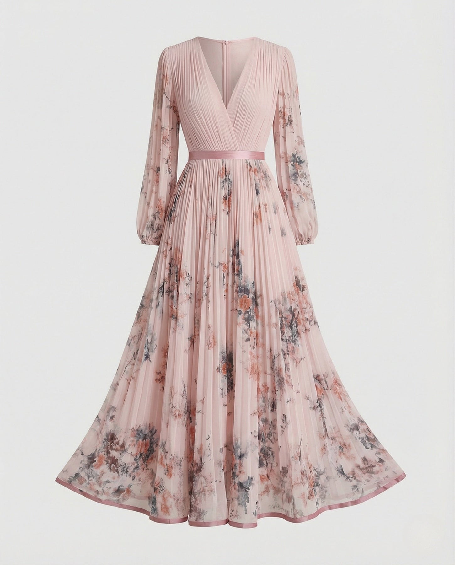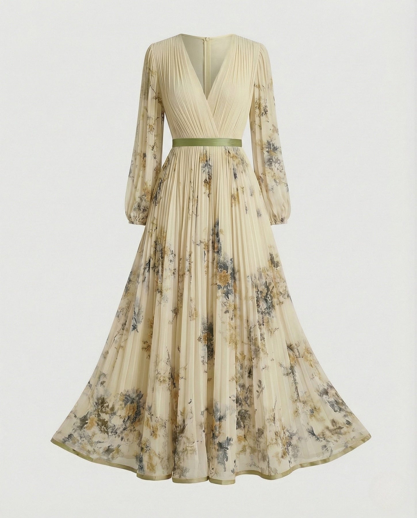 Vestido maxi plisado con manga larga y escote cruzado para mujer - Alwine